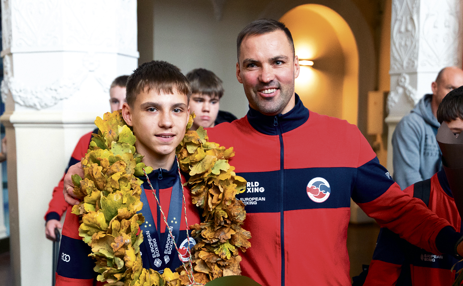 Boksininkas Vakaris Kiseliūnas ir treneris Virgilijus Stapulionis į Lietuvą bei Biržus parvežė Europos jaunučių bokso čempionato sidabrą. Nuotr. Sauliaus Čirbos / Lietuvos bokso federacija