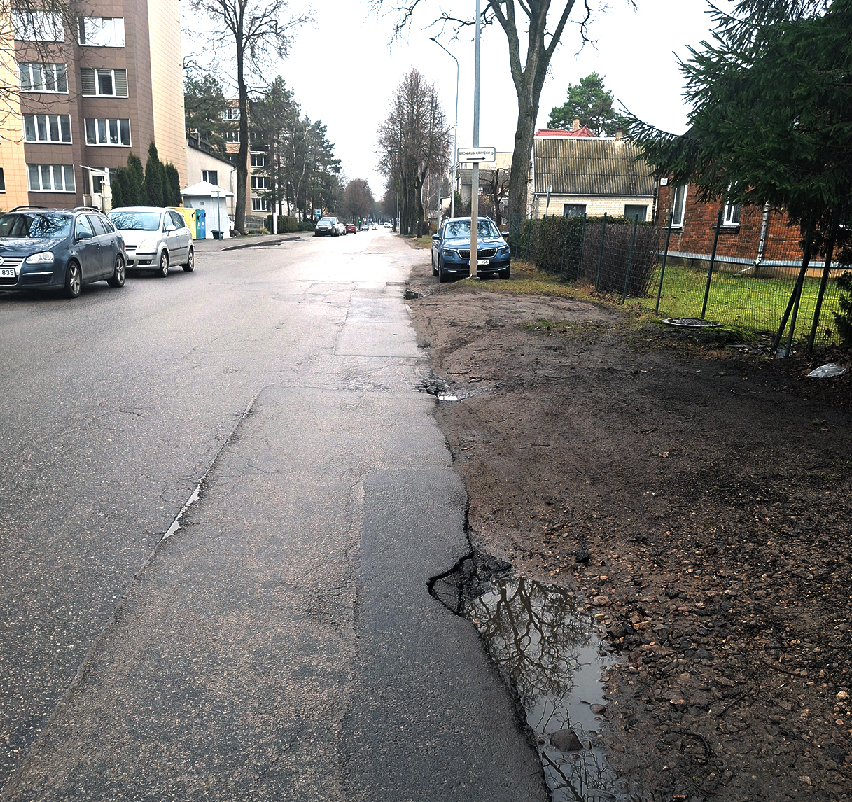 Jau daugelį metų akivaizdu, kad atkarpa nuo Respublikos – Vytauto gatvių šviesoforo iki ligoninės yra palikta likimo valiai. Tai ne tik estetinė miesto žaizda. Tai tiesioginė grėsmė žmonių saugumui. Vienoje kelio pusėje esantis šaligatvis yra nelygus, iškilęs, vietomis iš viso pavojingas vaikščioti, o kitoje kelio pusėje šaligatvio apskritai nėra. Situaciją apsunkina tai, kad vienintelis šaligatvis nutrūksta ties posūkiu į polikliniką ir ligoninę – tarsi už šios vietos gyventojai nebeegzistuotų.