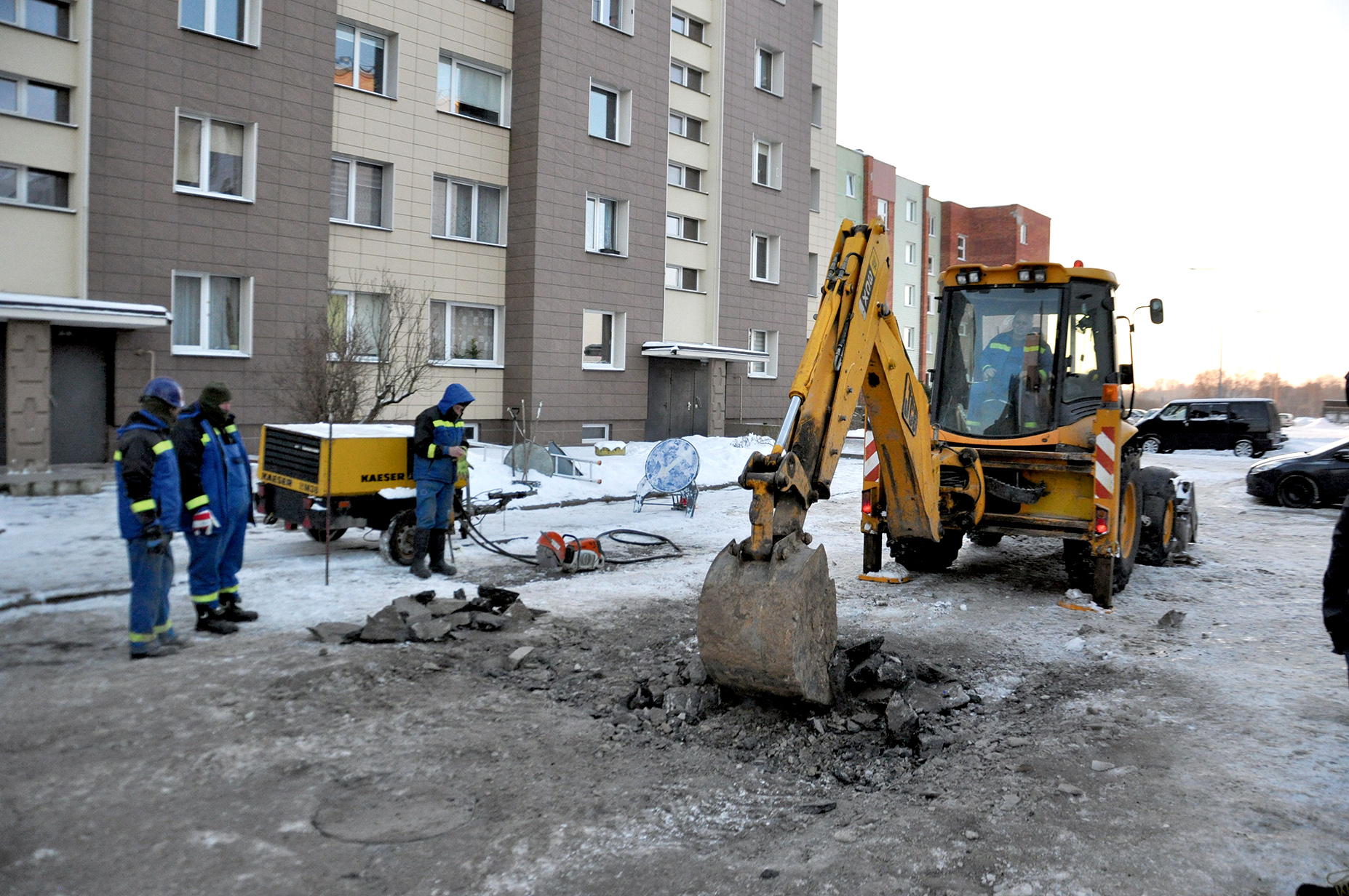 Darbai Vėjo gatvės daugiabučių kiemuose prasidėjo sausio 16 dienos rytą. Pradžia nebuvo lengva, nes pirmiausia pneumatiniu kūju teko išdaužyti asfaltą. Be to, po kelio danga buvo didelis įšalas, kuris neleido lengvai pradėti kasimo darbų. Iš Panevėžio atvykę telekomunikacijų specialistai avarijos vietoje pasirodė ryte, prieš pusę dešimtos.