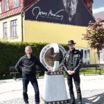 Egidijus Kairys ir Nėrius Pečiūra J. Meko skverelyje 2024 m. (renginyje spaudos dienai). Asmeninė nuotr.