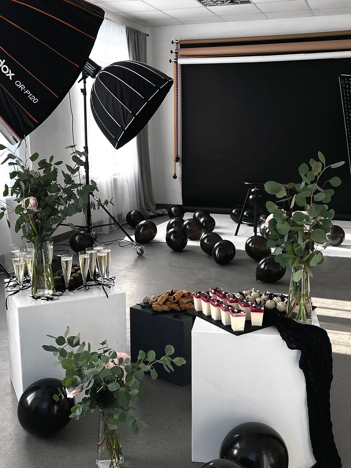 Fotografės Tomos studijoje – profesionali foto įranga, apšvietimas.