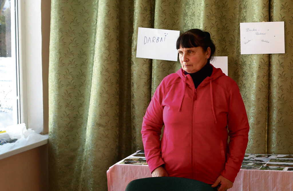 Skrebiškietės smalsiai apžiūrinėjo fotografijas, minėjo ten matomus pažįstamus žmones ir techniką, prisiminė, kur vienas ar kitas darbas vyko.