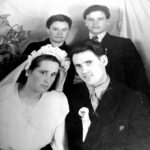 Pranciška ir Mykolas Emužiai su sūnumis Petru (kairėje), jaunyliu Romualdu Algimantu ir Boleslovu. Fotografo Plepio nuotrauka, daryta 1951 metais prieš pat Emužių šeimos ištrėmimą.