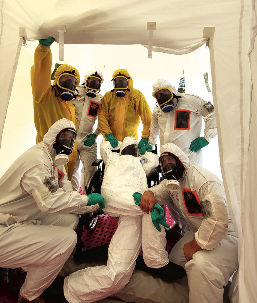 „Ukrainoje ir Lietuvoje skiriasi gydymo patirtis ir požiūris į ligonį. Bet niekada nepakeisi to fakto, kad jie dirba karo sąlygomis. Gauna daug pagalbos iš užsienio, vaistų ir technologijų. Ukrainiečiai net patobulina gydymo metodikas. Atsirado naujų papildomų tyrimų ir anesteziologų darbe, kai paaiškėjo, kad pacientai miršta nuo žaizdų, kurias sukelia sprogimai. Medikas yra pagrindinis rusų taikinys. Neliks medikų – nebus pagalbos. Visi dirba pasislėpę, improvizuotomis darbo sąlygomis. Medikas kartais net ginklą į rankas turi paimti“, – tokią iš Ukrainos grįžusių kolegų patirtį perpasakoja Karolis.