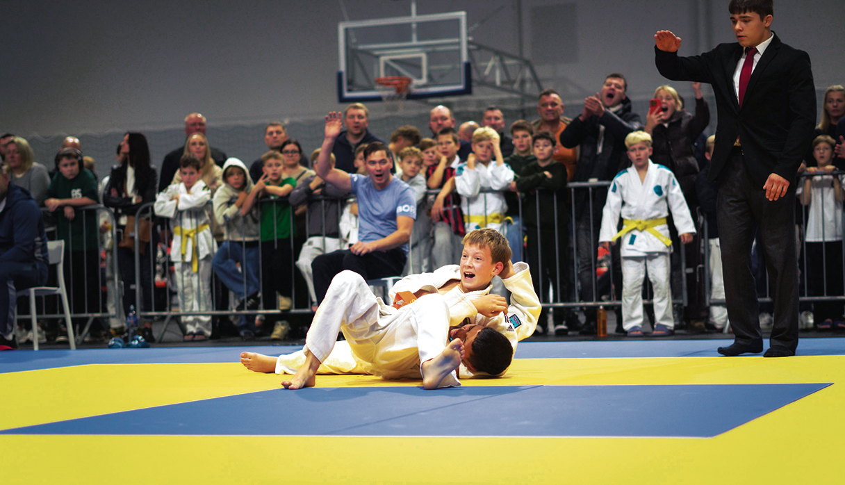 Ajaus Simėnas ką tik atliko veiksmą, kuris atnešė jam pergalę ir aukso medalį. Nuotr. Lietuvos dziudo federacijos