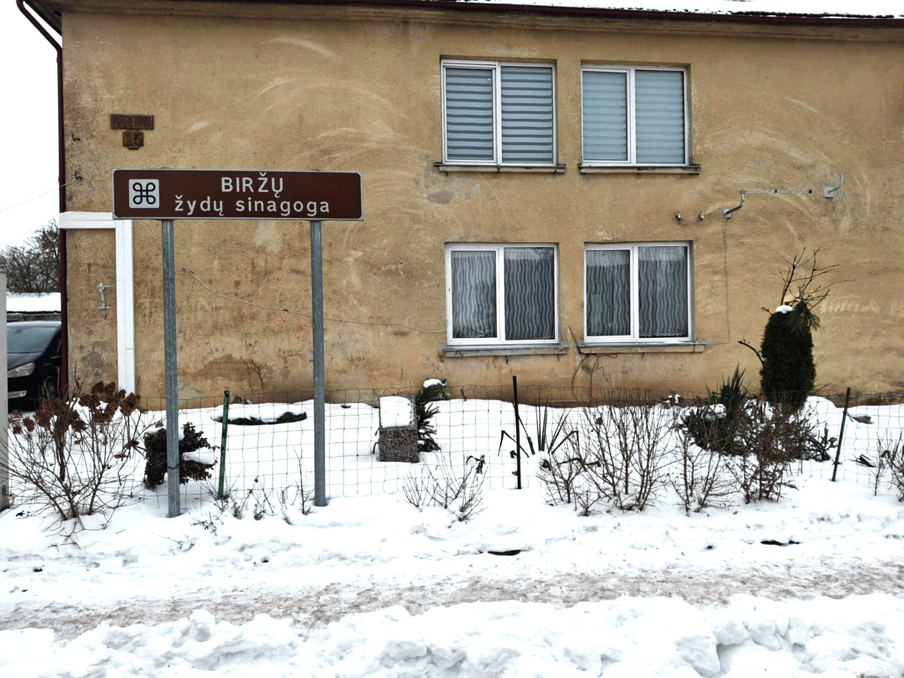Prieš renginį Biržų žydų kultūros ir istorijos draugijos pirmininkas Vidmantas Jukonis nerimavo dėl specialios nuorodos, esančios prie Karaimų g. 15 numeriu pažymėto namo. Joje užrašyta, kad čia žydų sinagoga. Kaip žinia, sinagogos čia seniai nebėra. Toje vietoje stovi gyvenamasis namas. Tiesa, šalia nuorodos pastatytas specialus sinagogos įamžinimo ženklas, žymintis buvusią žydų maldos namų vietą. Jis padarytas iš juodo poliruoto granito kaip istorinis liudijimas, perduodantis žinutę praeiviams, miesto svečiams apie čia buvusią sinagogą.
