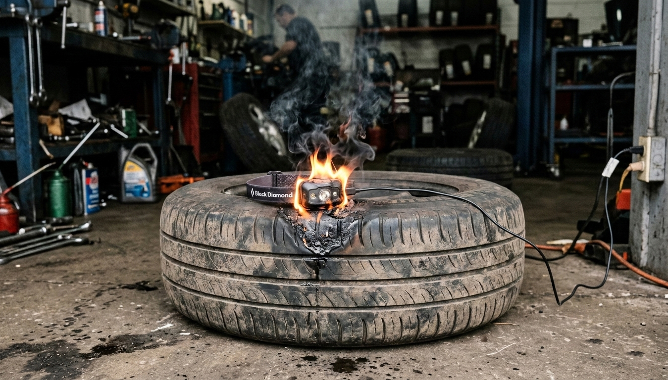 O buvo taip. Žmogus dirbo garaže ir naudojo lemputę, tvirtinamą gumele ant galvos. Geras ir praktiškas daiktas buityje, daug kas tokią LED šviesytę turime. Kažkur vyras turėjo išvažiuoti ir paliko lempelę krautis. Ją padėjo ant pripūstos sunkvežimio padangos. Grįžta susitvarkęs reikalus, žiūri – lempelė jau ugnimi šviečia, užsidegus ir padanga. Kaip pats žmogus sako, tokius pokštus tik internete rodo. O čia – pas jį garaže. Ir ne šiaip popierių uždegė, o storos gumos padangą. Tai nuo to laiko visus tokius prietaisus metaliniame puode palieka krauti – maža kas.
