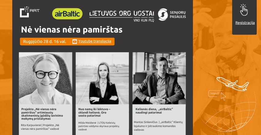 Paskaitos metu sužinosite daug naudingų patarimų, kaip pasiruošti kelionei, pradedant nuo dokumentų patikros ir registracijos internetu. Išgirsite, kaip elgtis, jei netyčia atvykstate vėlai, ir kokios bagažo taisyklės galioja keliaujant, įskaitant svarbius aspektus apie rankinį ir registruotą bagažą. Paskaitos metu bus taip pat kalbama apie kelionių su individualiais poreikiais ypatumus, pavyzdžiui, judėjimo negalios atveju. Galiausiai, sužinosite, kur kreiptis, jei kiltų neaiškumų ar problemų kelionės metu, kad jūsų patirtis būtų kuo malonesnė.