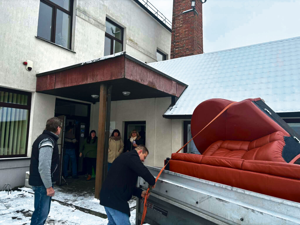 Norvegijos Rotary klubo nariai į Biržų socialinių paslaugų centrą atvežė neįgaliesiems skirtą minkštą kampą, o ateityje žada įrengti sensorinį kambarį. Nuotr. asmeninio albumo