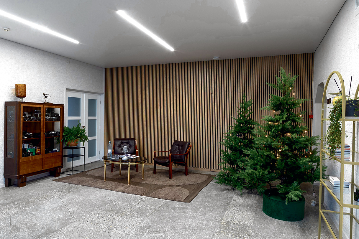 Renginių erdvė yra įrengta antrajame aukšte.