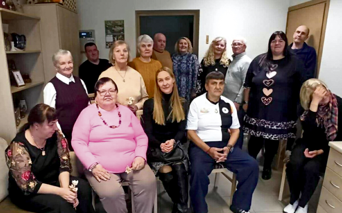 Savarankiško gyvenimo namų gyventojai ir svečiai susirinko šių namų bendro naudojimo kambarėlyje, kuris galėtų paliudyti ne vieną gyventojams reikšmingą bendruomenišką susitikimą – moliūgų skaptavimą, kalėdinių vainikų pynimą, pirmosios pagalbos mokymų išklausymą, visuomenės sveikatos biuro paskaitas apie sveiką gyvenimo būdą, vakarones su daina, savarankiško gyvenimo gyventojų gimtadienių šventimą ir dar daug kitų.