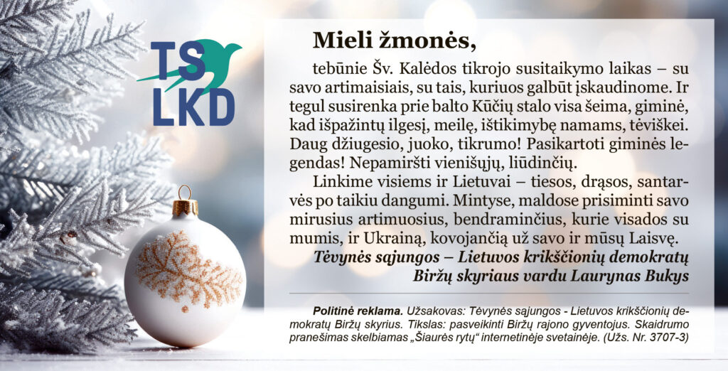 turinys, tikslas – TS – LKD Biržų skyriaus sveikinimas Biržų rajono savivaldybės gyventojams Šv. Kalėdų proga;