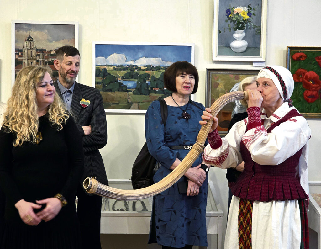 Kvietimas buvo ypatingas – „Siaudelos“ ansamblietės pūtė originalius parodinius Viktoro ir Nadijos Lukovnikovų ragus. Turėjo girdėtis!