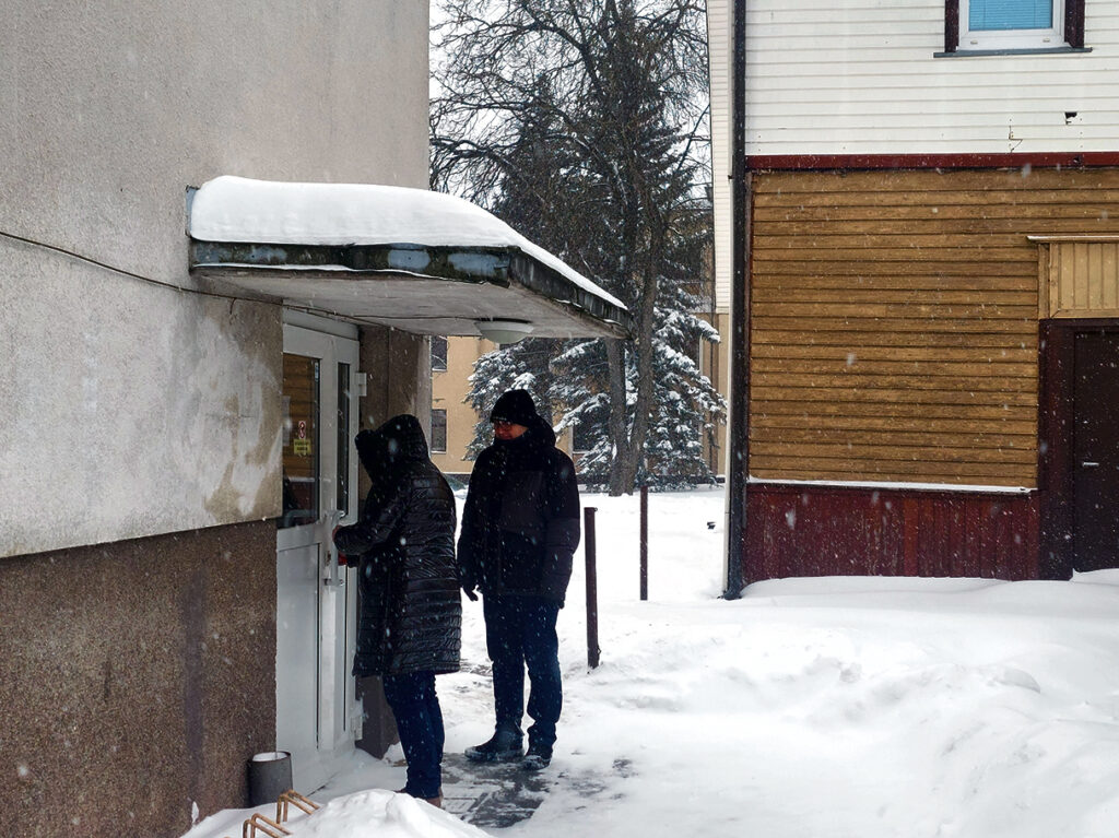 Socialinė darbuotoja Kristina Grunskienė šildėsi kailine liemene. Moteris šalčiu nesiskundė, darbo turėjo ir be kompiuterio – tvarkė klientų bylas.