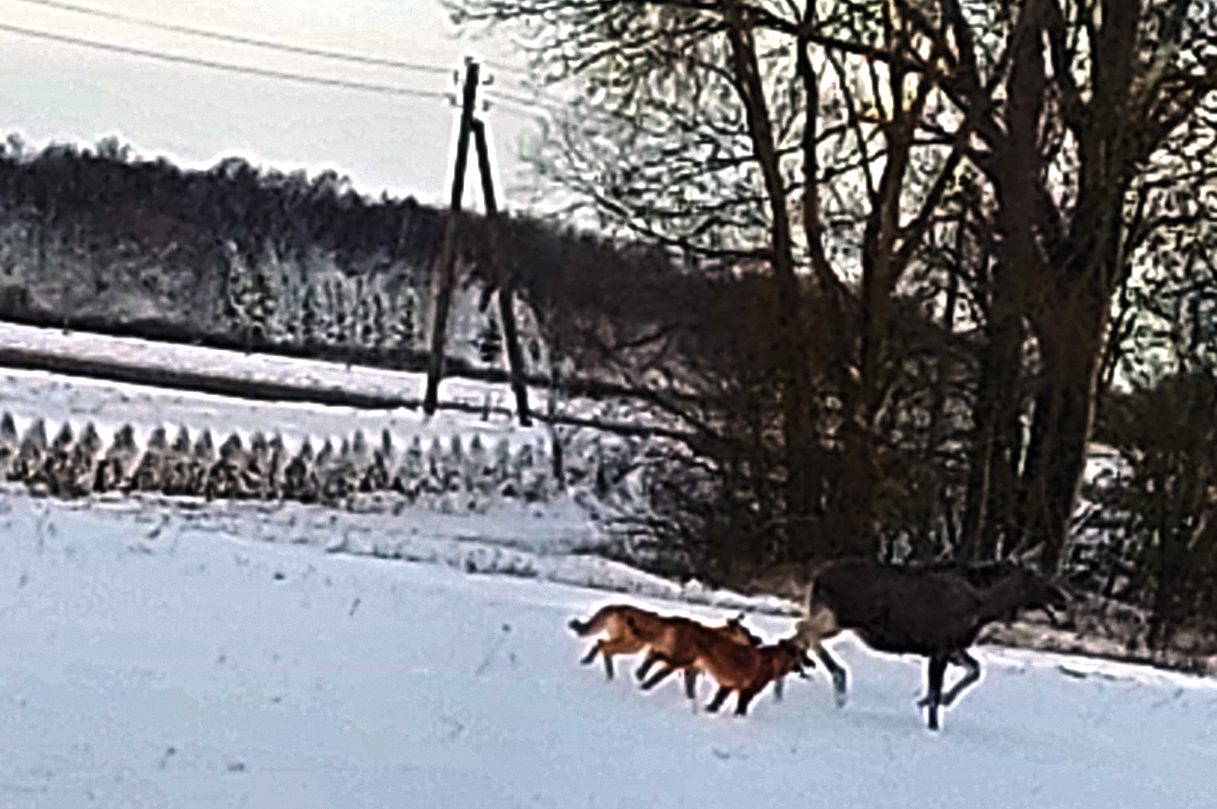 Redakciją pasiekė nuotrauka. Netoli vienos Jagaudžių kaimo sodybos trys į vilkšunius panašūs mišrūnai, apspitę jauną briedį, veja jį ir bando sudraskyti. Šį faktą užfiksavo sodybos, šalia kurios tai įvyko, gyventojai.