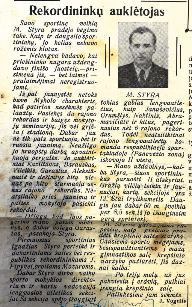 „Savo sportinę veiklą M. Styra pradėjo bėgimo take. Kaip ir daugelio sportininkų, jo kelias nebuvo rožėmis klotas.