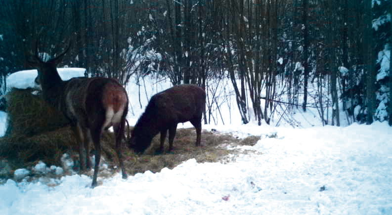 Tamošiūnų medžiotojų būrelio nariai atliko bandymą ir į gyvūnų viliojimo vietą atvežė šieno. Koks buvo nustebimas, kai paaiškėjo, kad elniai ir jį ėda! Tokio atvejo, kad elniai žiemą ėstų šieną, patyrę medžiotojai neatsimena.